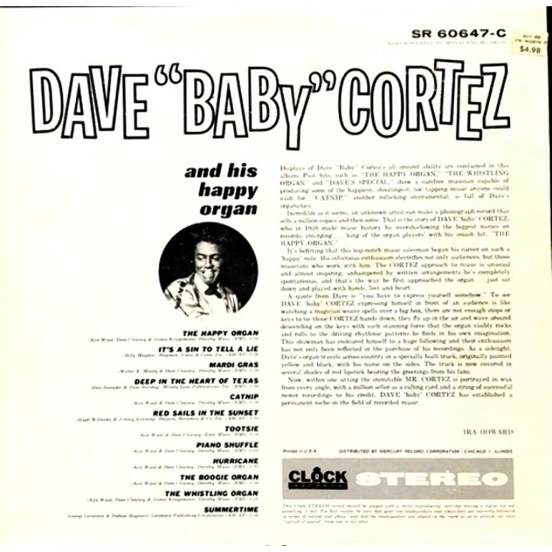 Stream songs including The Happy Organ and Rinky Dink. David Cortez Clowney born August 13 1938 known by the stage name Dave Baby Cortez is an American pop and RB organist and pianist best known for his 1959 hit The Happy Organ. 40 out of 5 starsHappy Organ Expanded Edition Dave Baby Cortez.